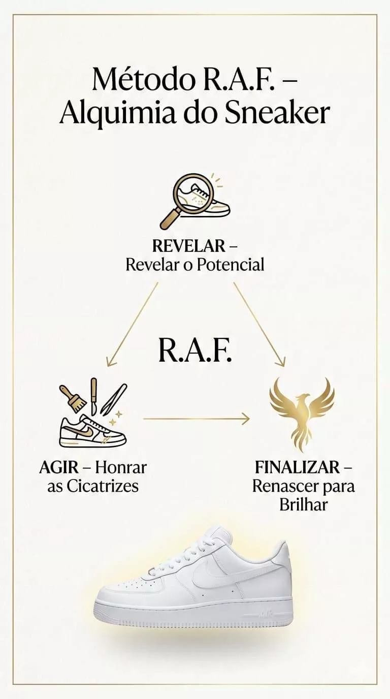 Aprenda a restaurar sneakers com um método testado, passo a passo, de forma segura e replicável — mesmo começando do zero — com o Método R.A.F.