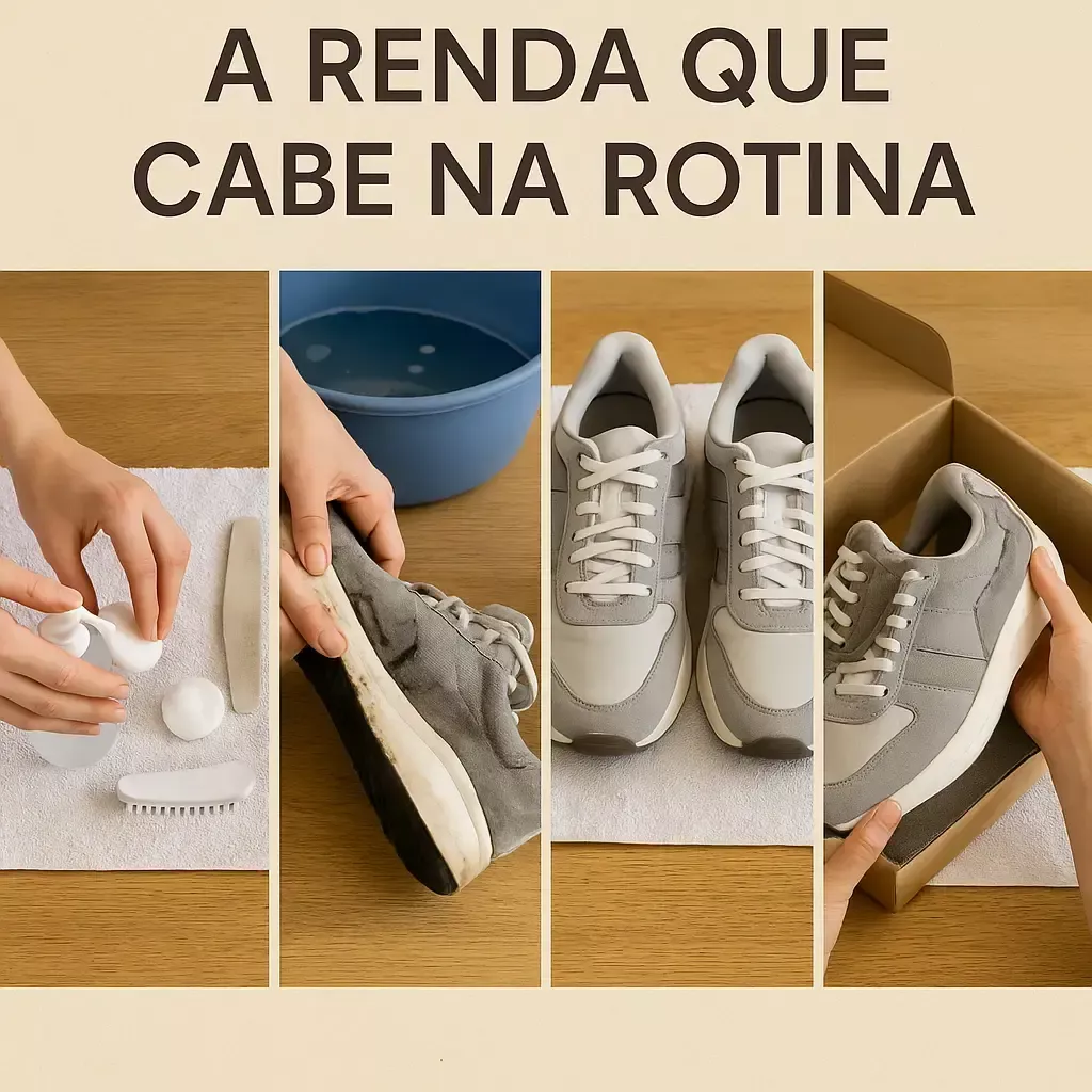 Pegue agora um mini tutorial gratuito, você vai descobrir como usar o que já tem em casa para começar sua primeira limpeza e valorização de um tênis usado. É simples, rápido e já te coloca em movimento.